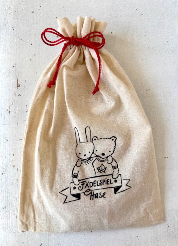 Die Teile sind in einem Bio Baumwollsäckli gut verpackt und ist so auch eine tolle Beschäftigung für unterwegs.